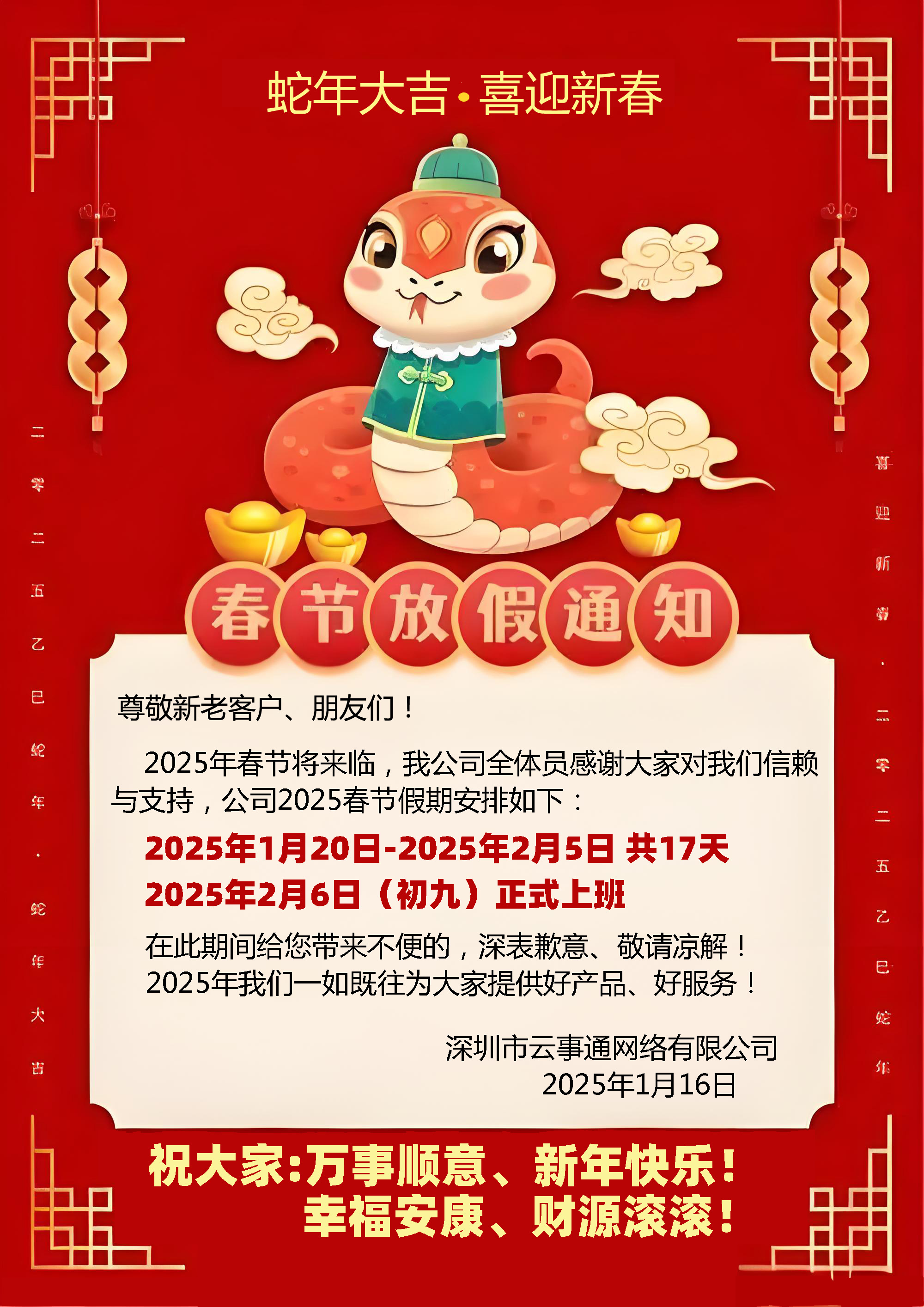2025年深圳監控安裝公司春節放假通知